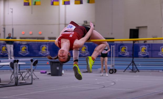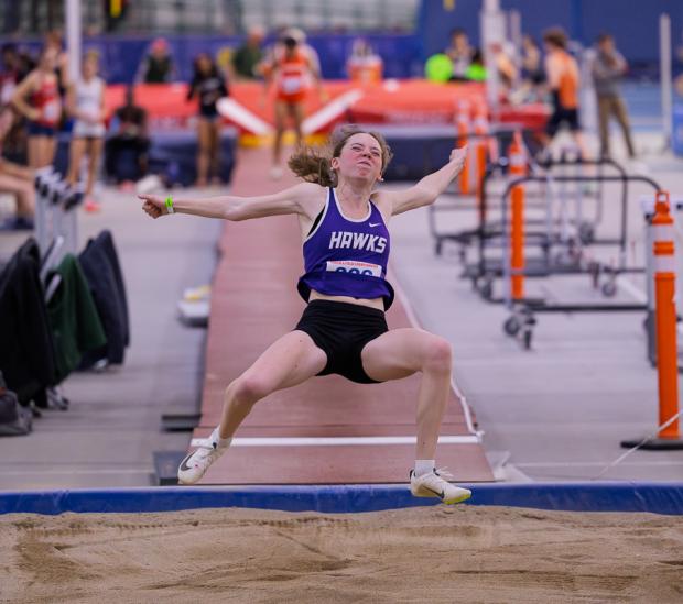 Marshwood junior Anna Jennings leaped to a new personal best of 18-7 1/2 to finish on the podium in fourth; the jump is the sixth-best in Maine indoor history. Greely's Victoria Zandan was ninth with a best effort of 17-11 1/4.